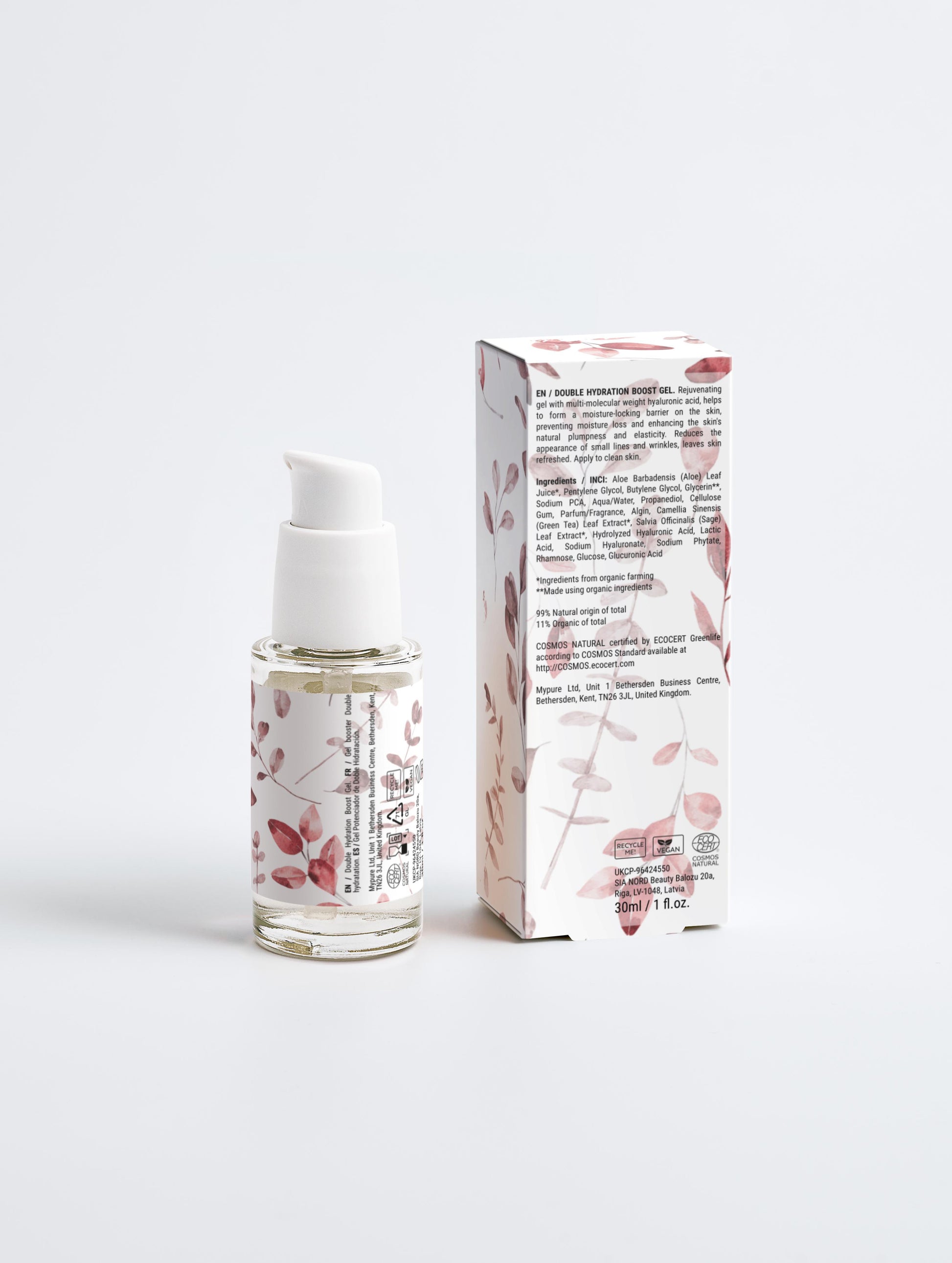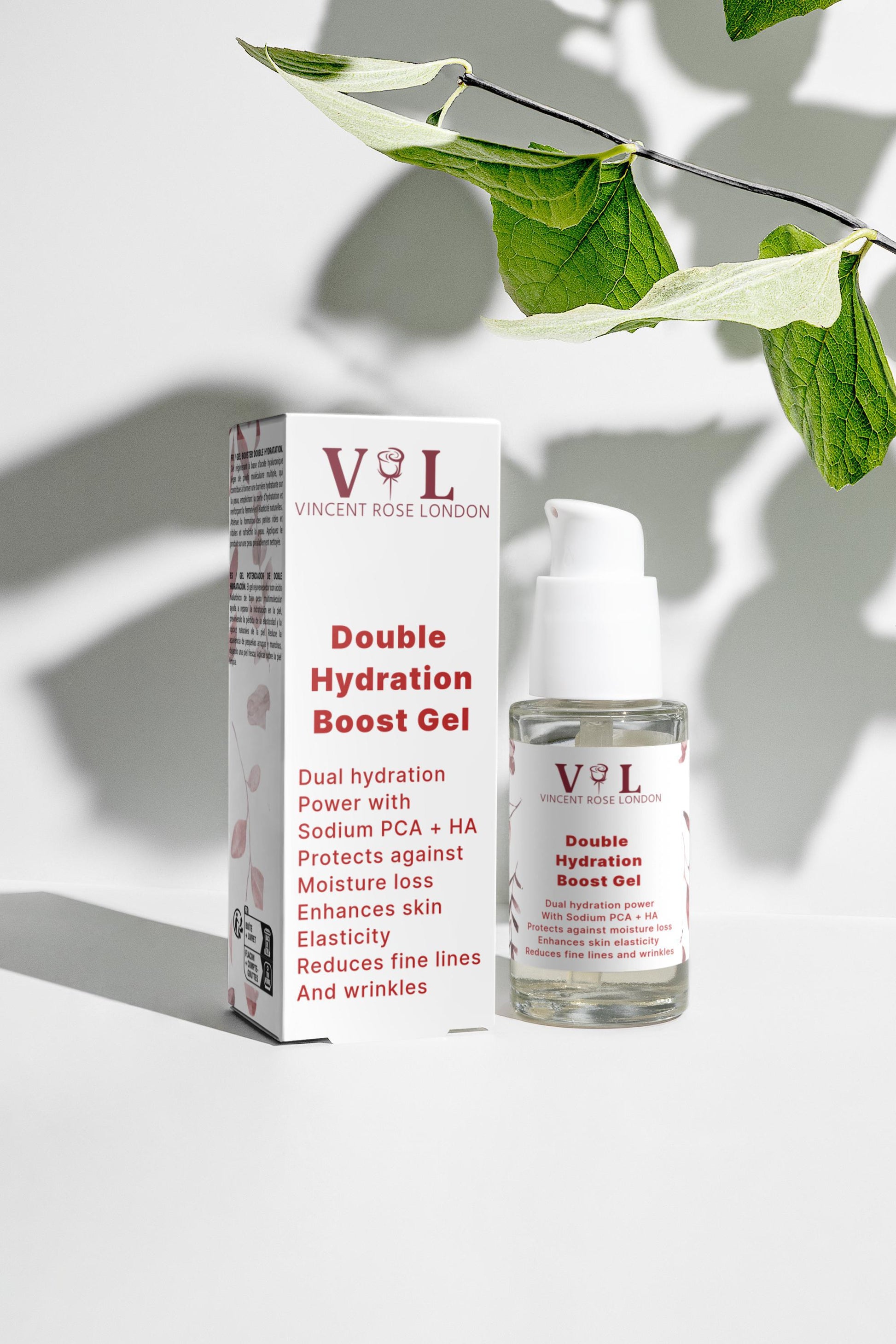 PRODUCT DESCRIPTION (30 ml) – Revive your skin with our Double Hydration Boost Gel, a hydrating Powerhouse blend featuring multi-molecular-weight Hyaluronic Acid, Sodium PCA, Aloe Leaf Juice, Sage Extract and White Tea Extract. This dynamic formula creates a moisture-locking barrier, preventing moisture loss and enhancing your skin's natural plumpness and elasticity. Revel in the reduction of fine lines and wrinkles, leaving your skin refreshed and revitalised.