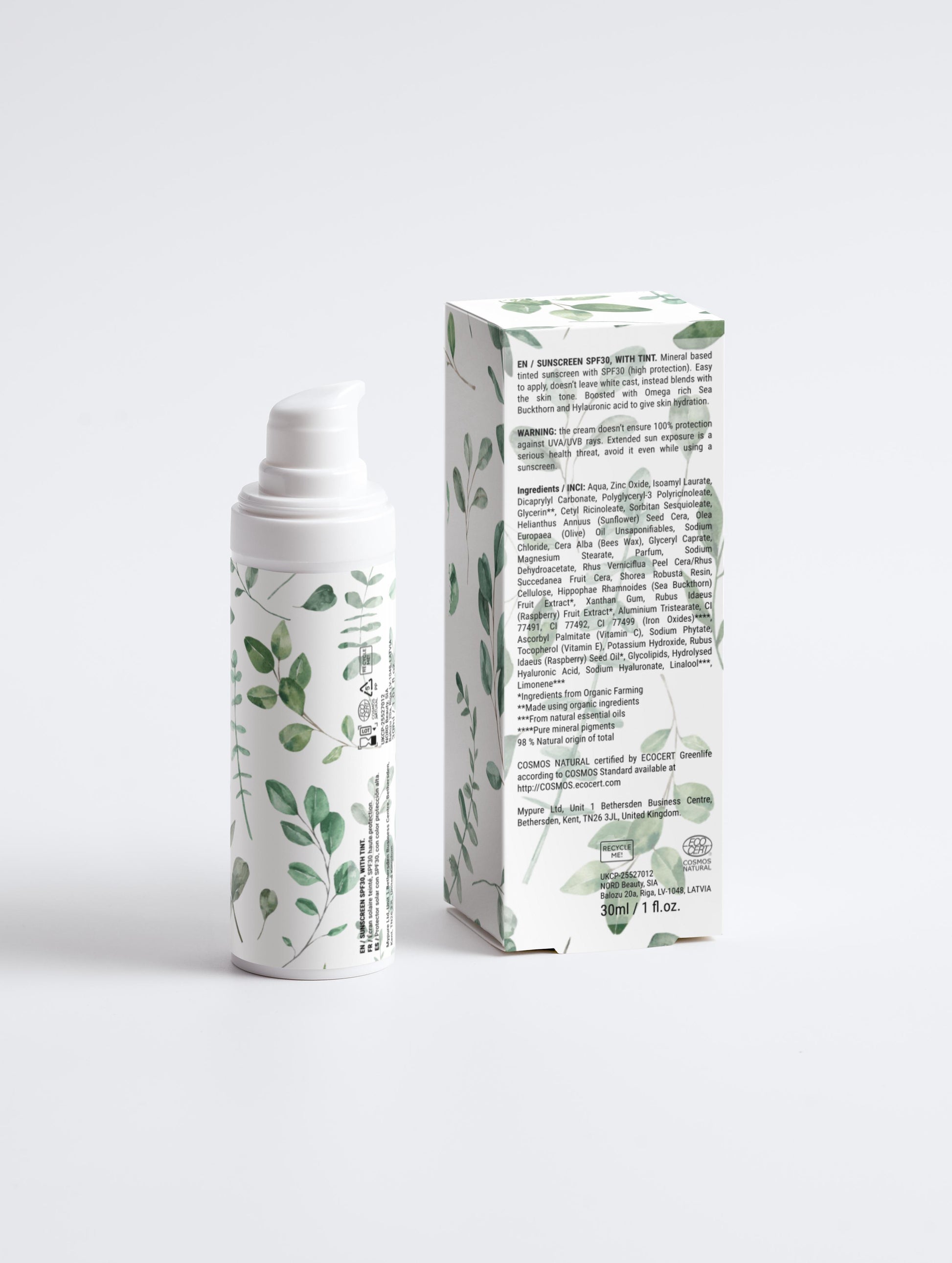PRODUCT DESCRIPTION (30 ml) – A mineral-based tinted sunscreen not only provides sun protection but also offers tinted coverage, making it a versatile product for those looking to shield their skin from the sun while enhancing their complexion and leaving no white cast. Infused with the enriching properties of Omega-rich Sea Buckthorn and skin-loving Hyaluronic Acid, it not only shields you from the sun but also hydrates your skin. Immerse yourself in the invigorating aroma of juicy fruits and sunny ylang-ylang.